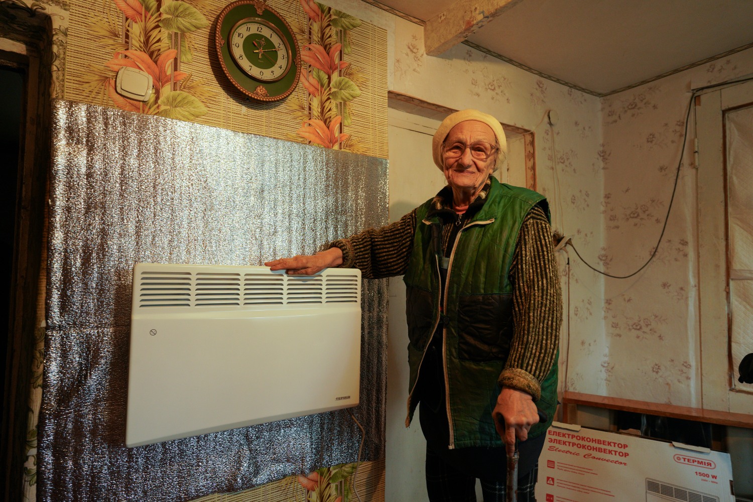 Durante años, la casa de Nadiia fue un espacio sencillo pero seguro. Con sus pensiones podían cubrir lo básico: comida, gas, reparaciones ocasionales. Pero la guerra lo cambió todo. Los precios se dispararon, las ventanas dañadas dejaron de aislar, la vieja caldera de gas comenzó a fallar, y el frío empezó a ganar terreno dentro de su propio hogar. “Teníamos una caldera de gas vieja, pero estaba rota, así que no podemos usarla correctamente ni regular su potencia, solo funciona con carga completa, lo cual es muy caro. Normalmente nos abrigamos con muchas capas de ropa. Anoche dormía así y le pedí a mi hijo que encendiera la caldera durante la noche, pero incluso por la mañana seguía teniendo frío.”