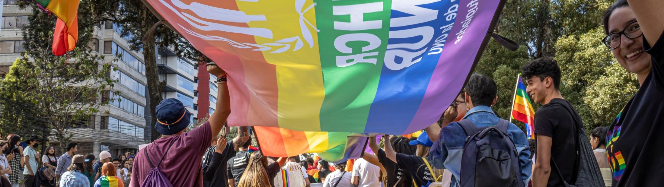 ACNUR trabaja para proteger a las personas refugiadas, solicitantes de asilo, apátridas y desplazadas internas lesbianas, gais, bisexuales, transgénero, intersexuales y con orientación sexual, identidad y expresión de género y características sexuales diversas (LGBTIQ+). ACNUR trabaja para proteger y garantizar que puedan acceder a servicios seguros, inclusivos y libres de discriminación.